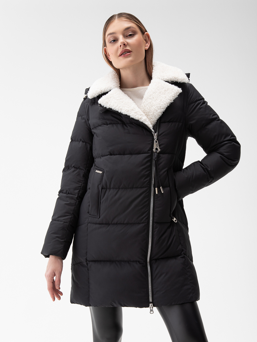 Крой воротника - съёмный капюшон, отделка эко мех