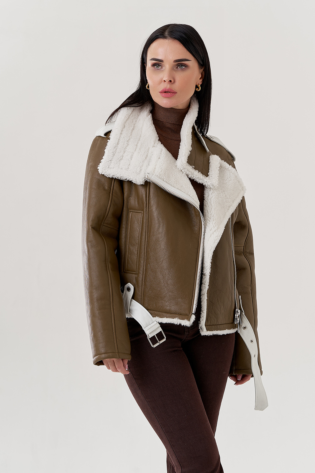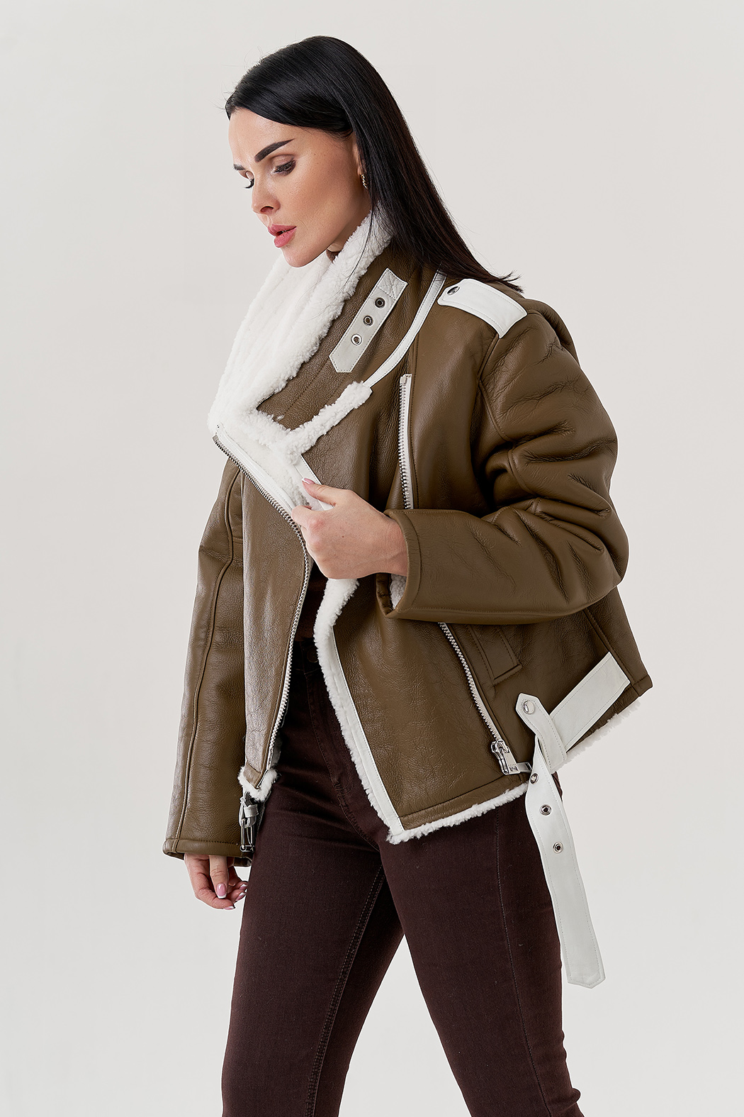 Крой воротника - отложной , отделка овчина белый