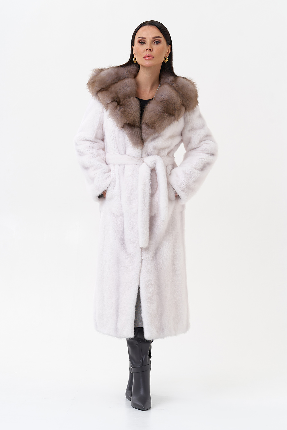 Тип ворота - капюшон, отделка куница